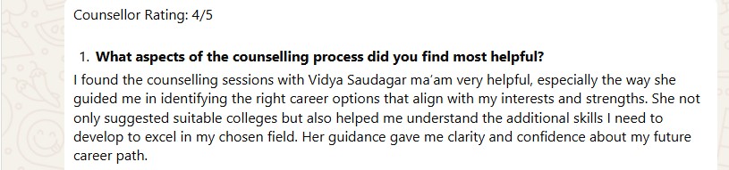 - Specialization: School Student Counseling,College Student Counseling,Admission Counseling,Working professional Coaching / Mentoring