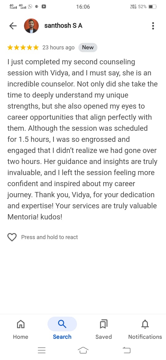 1. Discovering Individual Interests, Personality and Ability through insightful Psychometric Assessment Tool. 2. Providing Effective guidance to understand your Personality, Recognize your Strengths/Weaknesses and leverage you for Successful Career and Identify your Development areas.Client Testimonials