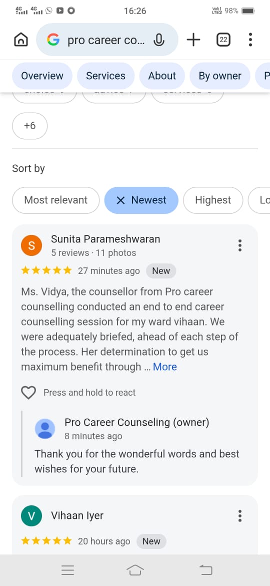 | Senior Career Counsellor | Pro Career Counselling | 2 |